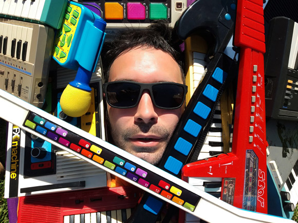 Collectionneur et recycleur de jouets, c’est une pléiade d’objets multicolores ludiques exhumés de l’oubli qu’il réanime pour créer une musique assimilée et inspirée des pionniers tels que François de Roubaix ou Mort Garson, cette nébuleuse de musiciens jouant avec des instruments improbables.