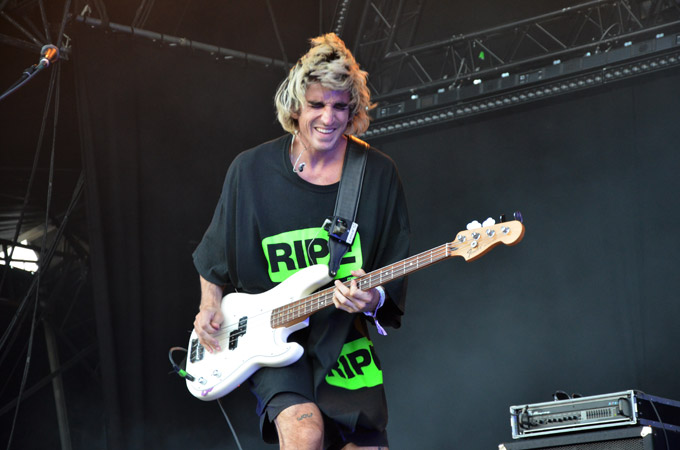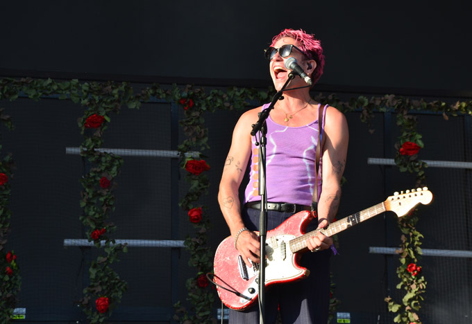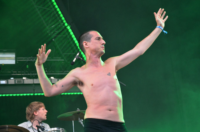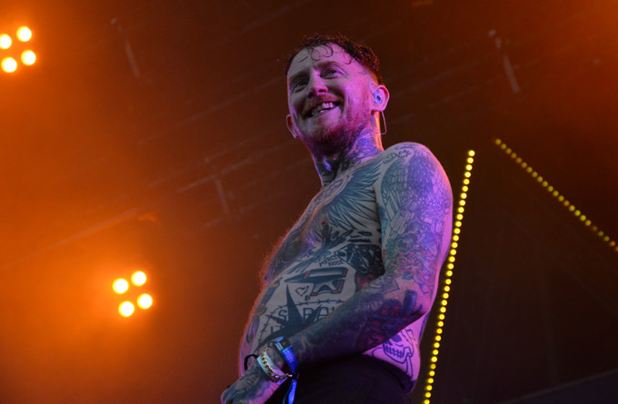 On monte encore d’un cran d’énergie avec Franck Carter & The Rattlesnakes pour un véritable concert punk furieux et brutal. À peine entré sur scène Franck se déchaîne et donne le ton, le rock va se faire sauvage ! Dès le second morceau, il passe par-dessus les crash-barrières et plonge dans la foule qui le porte à bout de bras. Franck continue ainsi le concert et donne l’impression de marcher sur un public en ébullition. Un immense pogo s’installe et se transforme en circle- pit autour de Franck. Un concert dont l’intensité ne faiblira pas et même si la pluie s’installe peu à peu, l’ambiance et la chaleur nous font ignorer cette eau providentielle.