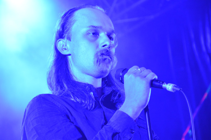 On repart doucement vers la sortie, on admire la féerie des lumières et des feux qui caractérise aussi l’ambiance magique du Cabaret Vert. On passe près de la scène Razorback où un concert est sur le point de commencer. Trois gars vêtus de noir se préparent, le chanteur à un drôle de look, il est partiellement dégarni sur le haut du front, a de longs cheveux jusque sous les épaules et une moustache à la José Bové. Il se tient raide comme un piquet derrière son micro et fixe froidement le public. Sans aller dire qu’il a un look de tueur en série, il a plutôt l’air inquiétant. Et puis il se met à parler russe. On s’attend à un concert dans le genre Death Metal mais en fait pas du tout. En 10 secondes, nous faisons un bond de plus de quarante ans en arrière vers les prémices de la New Wave. Et c’est ce fameux groupe qui nous y emmène : Molchat Doma. Ce groupe originaire de Minsk est saisissant d’authenticité. Il ne s’agit pas d’une inspiration New Wave, on se croirait vraiment en 1980-81 avec une Cold Wave inspirée et dansante avec la froideur du timbre de voix et de la langue. C’est efficace à souhait et le public en est dingue. Pour, nous ce fût vraiment la grosse surprise de notre séjour !