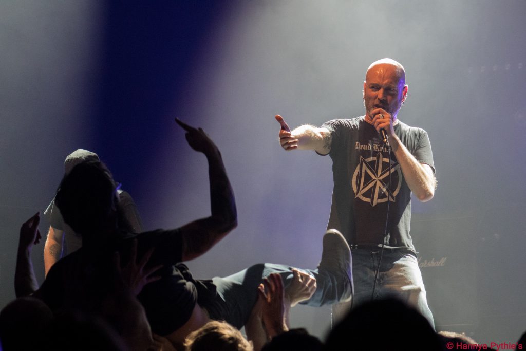 Le groupe reste énervé et Reuno, par ses interventions entre les titres, garde le public en rythme. D’ailleurs, les allers-retours se font souvent de la fosse à la scène par quelques slameurs et sont assez bien accueillis par le chanteur qui, après une étreinte, lance une petite pique à certains.