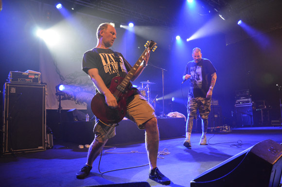 Arrivent les inimitables Opium du Peuple et leur sens du show et du détournement de tubes populaires remis à la sauce rock, punk, métal. «Les Corons», «Poupée de cire, poupée de son», et d’autres références comme Motörhead qui remplace les Beach Boys, les Toy Dolls et leur célèbre «Nelly the Elephant». Bref, c’est la folie brute, du spectacle comme on aime, un grosse dose de bonne humeur délicieusement explosive.Retour dans les 90’s voir les 80’s avec le hardcore new-yorkais de No Turning Back, groupe Néerlandais formé en 1997qui dégage un hardcore à la fois lourd et dynamique dans la ligné de Sick Of It All. Un excellent concert qui monte en intensité, le public est bien présent et l’ambiance est au top !