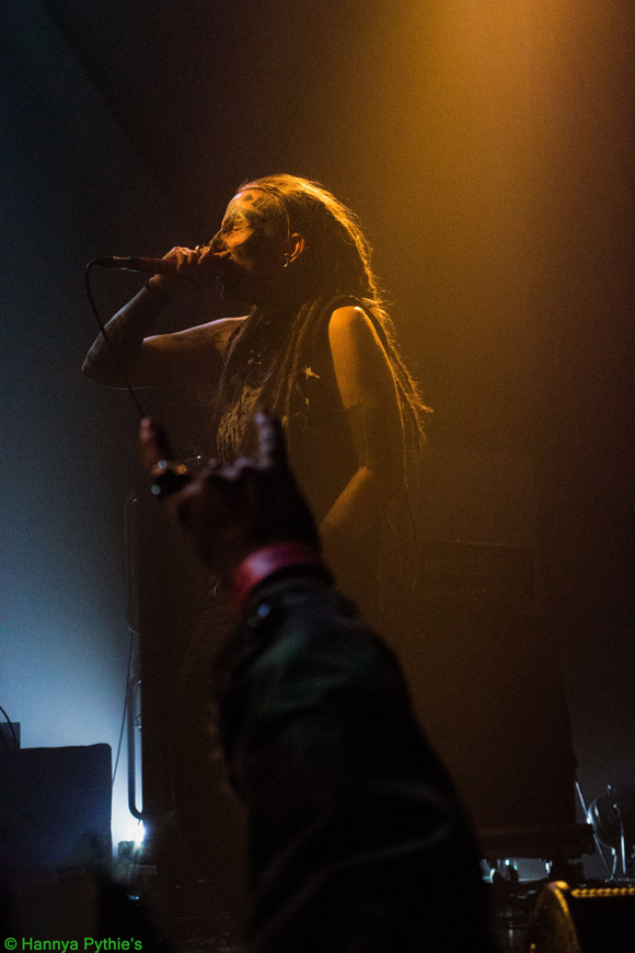 On passe directement à l’Auditorium pour le groupe WitchFinder. Je suis envoûtée par une musique, une voix et rien d’autre. je ne peux m’empêcher d’observer ce chanteur très expressif et je me laisse porter, comme le reste du public, par ce son ensorcelant. La salle est petite mais à travers la fumée qui l’envahit et cette voix mystique, il suffisait que je ferme les yeux quelques secondes pour me sentir ailleurs.