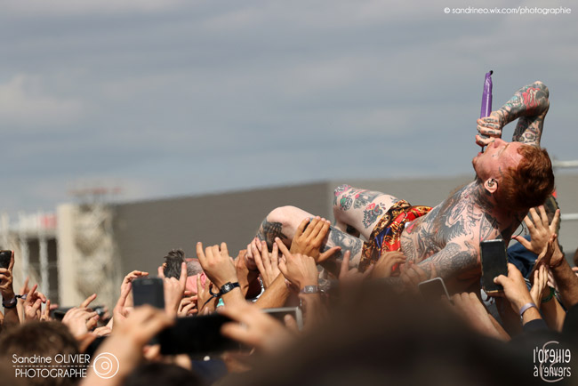 FRANCK CARTER est très attendu. À peine son show commencé qu’il enjambe les crash barrières pour se méler au public. Le concert prend une ampleur transcendentale avec ses fans autour de lui sui oeuvrent en un circle pit impressionnant ! Un show mémorable !