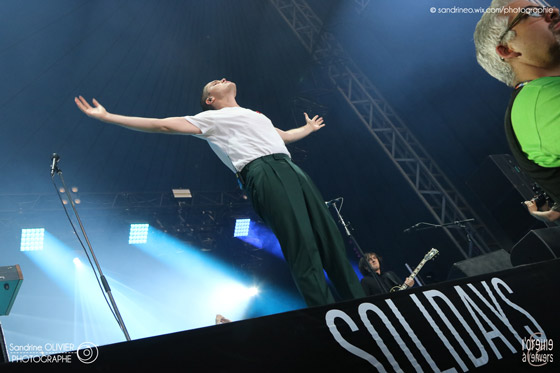 Sur la scène « Bagatelle », il arrive, nonchalant, d’un bermuda vêtu, devant fans et curieux sont venus apprécier le jeune chanteur/rappeur/slameur Cristolien. Avec son air tranquille et ses mots forts, il est fier et heureux de jouer à Solidays et conquiert le cœur de tout le public. Une scénographie des plus sobre, un écran de lumière pour marquer la silhouette de la star, l’attitude concentrée et peu au contact du public, le chanteur se détends après 3 premiers morceaux et commence à gesticuler et prendre davantage de plaisir à jouer. Les fans reprennent en cœur ses titres, son public désormais nombreux, est totalement séduit !
