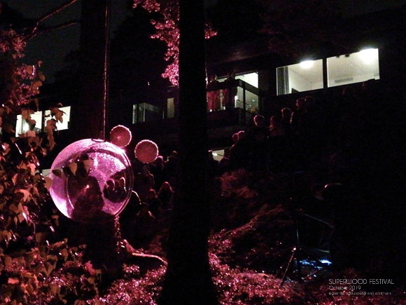 Le clou de Superwood est sans conteste le « Wood Tour ». Quèsaco ? Alors on met son gros manteau, ses gants, son bonnet et ses chaussures de marche et on attend d’être guidé vers des endroits secrets dans le noir le plus complet pour une dizaine de mini concerts – ou plutôt des performances – complétements déjantés, poétiques et inattendus. Au milieu des bois – attention où on met les pieds ! – sur la plage, un terrain de tennis, un toit ou sur la mer !